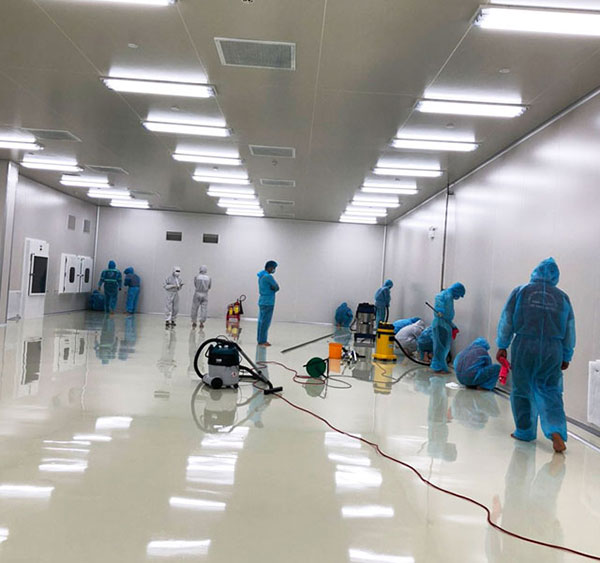 - Vệ sinh sàn nhà xưởng: Đánh bóng, khử trùng và làm sạch triệt để.